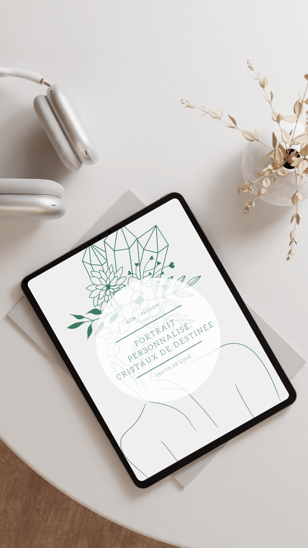 Recevez votre portrait détaillé par e-mail. Les 4 pierres associées vous seront livrées séparément, soigneusement emballées.📖 Book imprimé (format A5) – 44,90 €